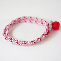 昔ながらの製紐機で作られた組紐を職人さんの手仕事でブレスレットに仕上げています。小田巻とよばれる玉の部分が輪っかに固定する役割りとアクセントにもなっています。