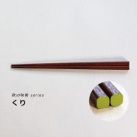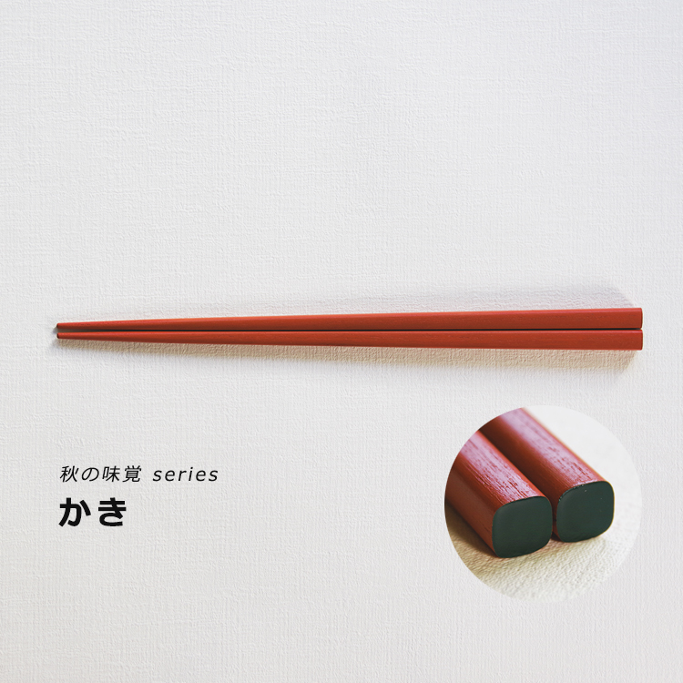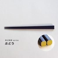 秋の美味しい食べ物を持ち手と天の色合いで表現した秋が待ち遠しくなるお箸です。