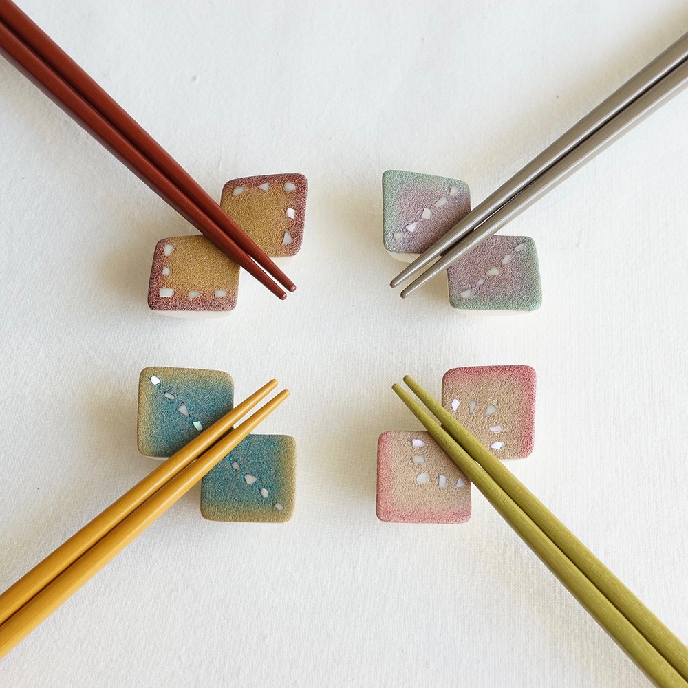 磁器に漆塗りを施した磁体漆器の箸置きです。