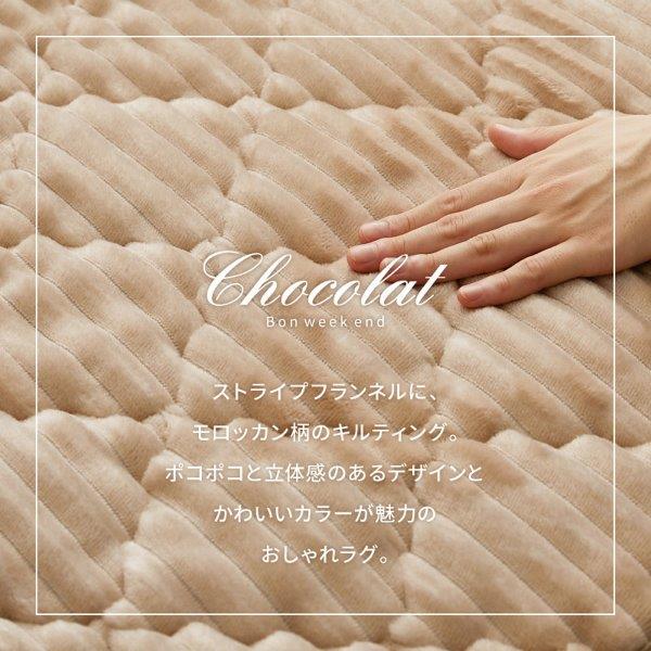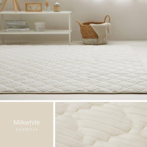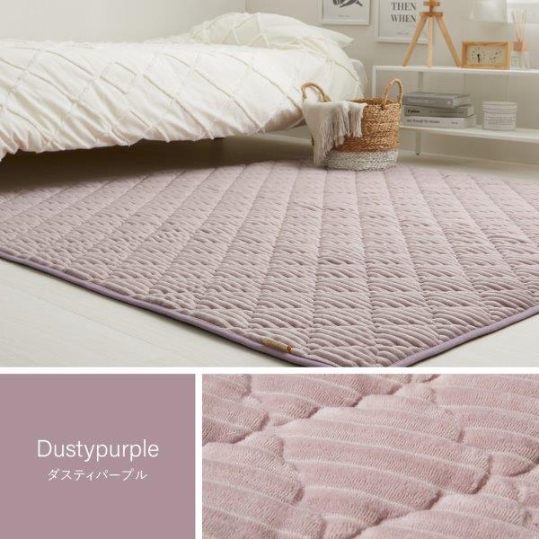 大人かわいいくすみカラーのふわふわラグ。短毛フランネルのなめらかなタッチと、ぽこぽことしたキルトが心地よい癒しの一枚に。中身をウレタンと綿を混合にすることで、ボリューム感を出しました。裏面には滑りにくい加工付きでラグがズレにくく、汚れても洗濯機で丸洗いできるから、小さいお子さまのいるご家庭でも安心してお使いいただけます。