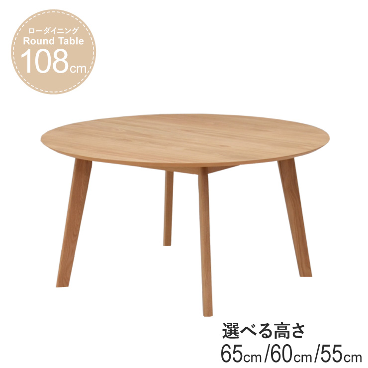 ローテーブル 脚カット セミオーダー ローダイニング 丸 幅108cm 高さ65cm 60cm 55cm 低め 4人掛け cote108-351ok-cut ナチュラルオーク色 6s-1k-240 hs