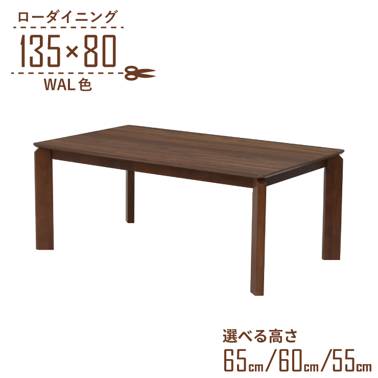 ローテーブル 脚カット セミオーダー ローダイニング 幅135cm 高さ65cm 60cm 55cm 低め 4人掛け kurea135-360-wal-cut ウォールナット色 LD 4s-1k-230 hs