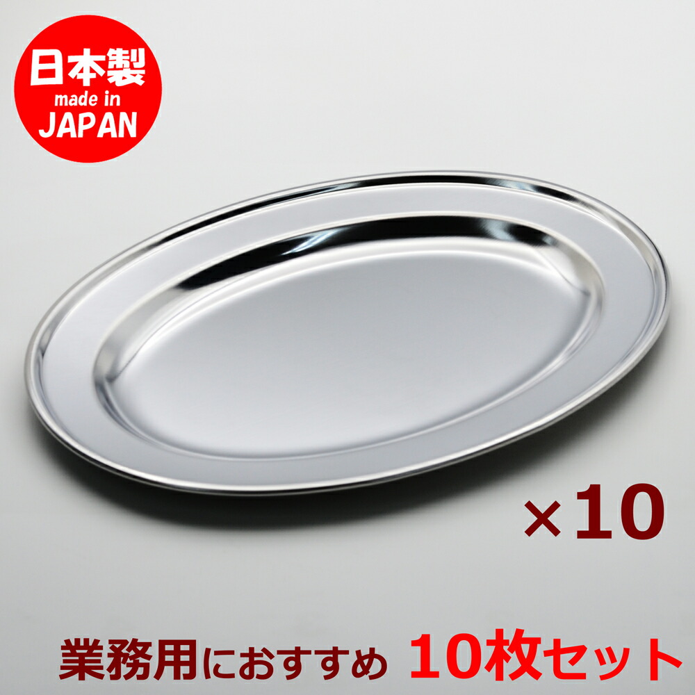 昭和レトロな喫茶店や洋食屋でお馴染みのステンレス製の楕円皿業務用におすすめ!10枚セットでの販売です。ナポリタンやオムライス、カツカレーなど昔ながらの洋食メニューに愛用されています。