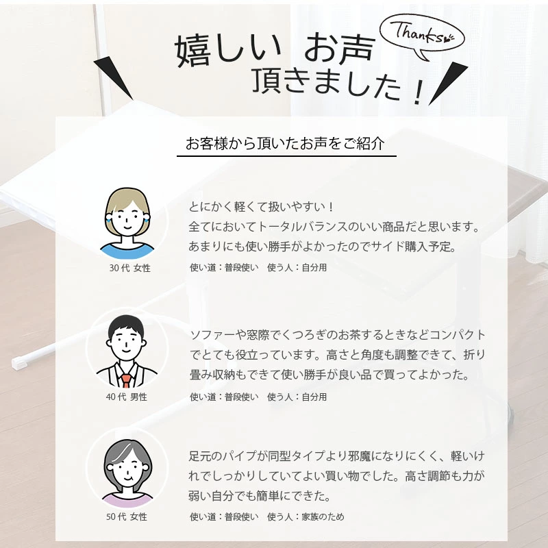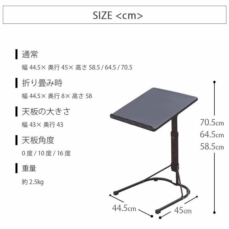 高さ調節可能、角度調節可能なマルチテーブルが便利です。