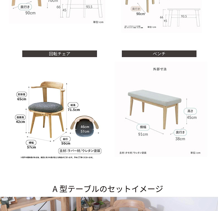 マイ 130変形A/B_4点セット_回転チェア