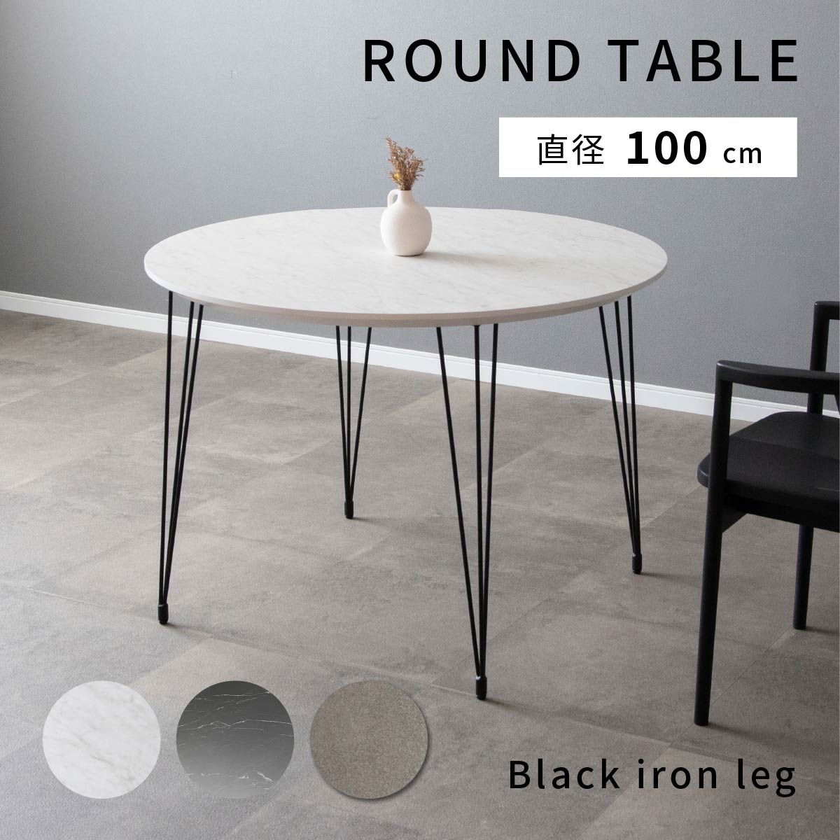 ダイニングテーブル 丸テーブル ダイニングテーブル 脚 アイアン メラミン天板 石目柄 おしゃれ 円形 幅100 cm 4人掛け 2人 3人 円形 丸型 カフェ