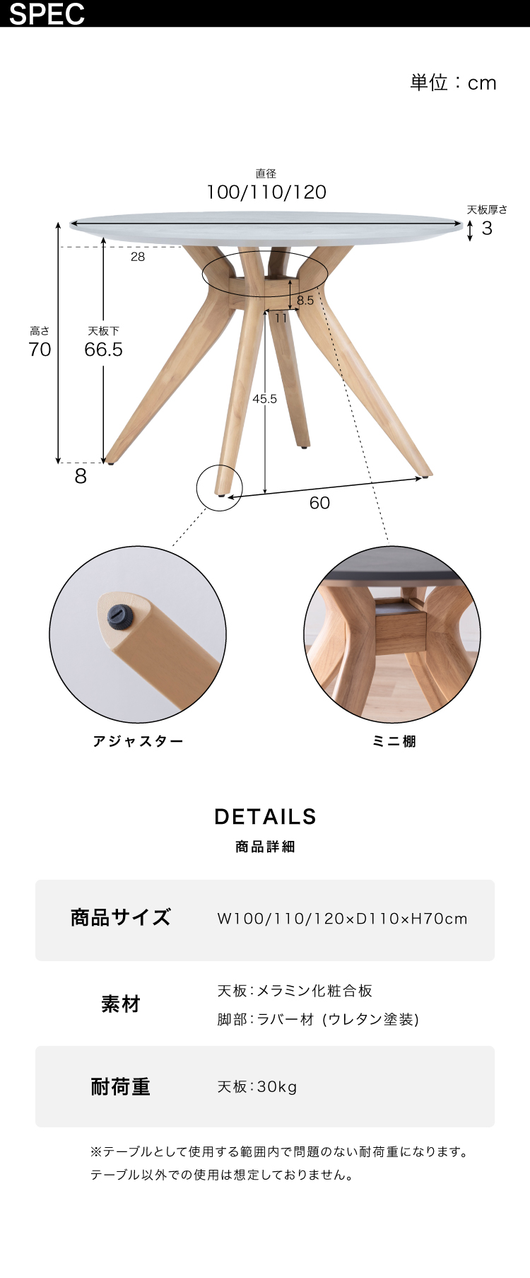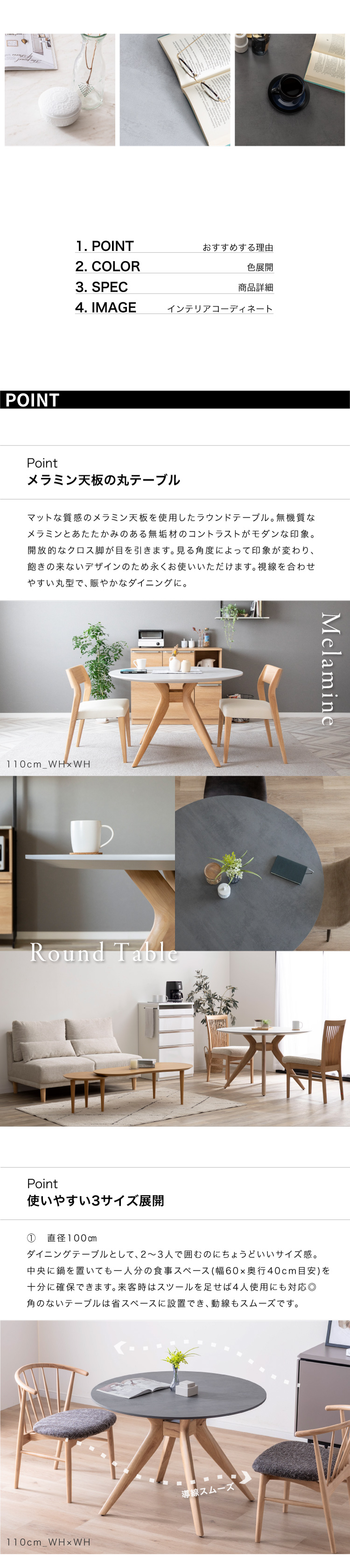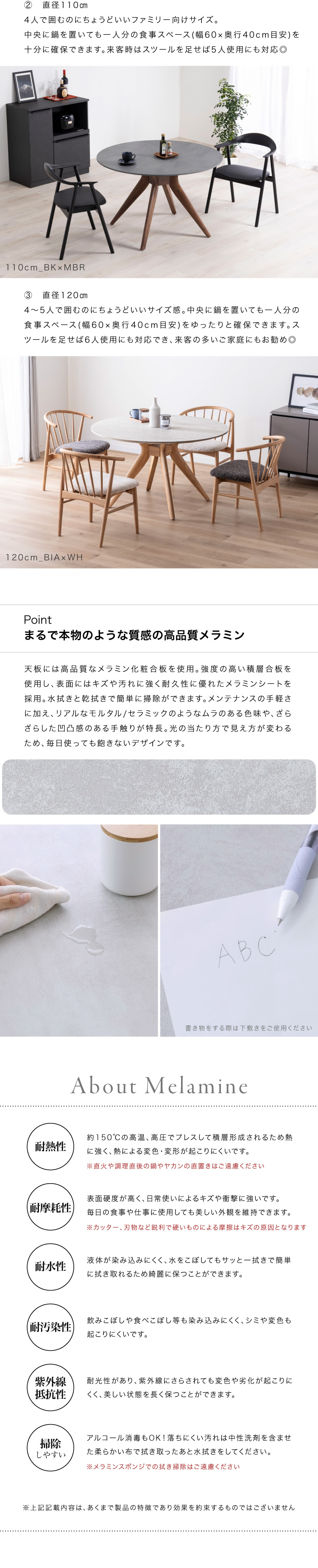 メラミン天板 円形 ダイニングテーブル
