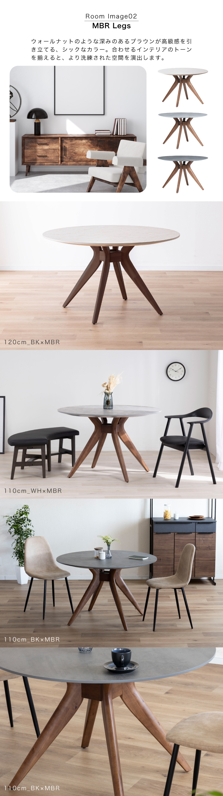 ダイニングテーブル 丸テーブル 幅 100 110 120 cm 4人掛け メラミン モルタル調 天板 木製 脚 北欧 おしゃれ 食卓 円形 テーブル 幅 4人 ラバーウッド