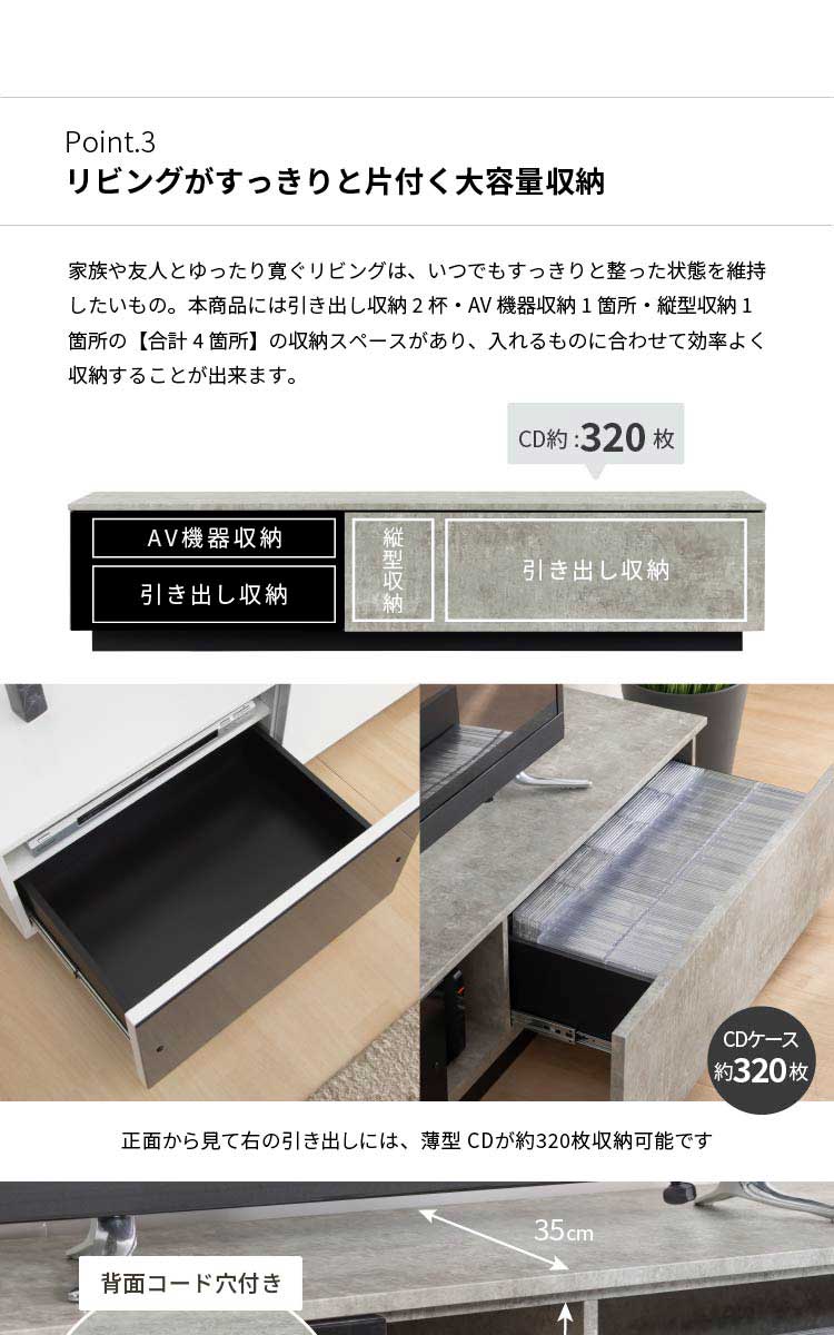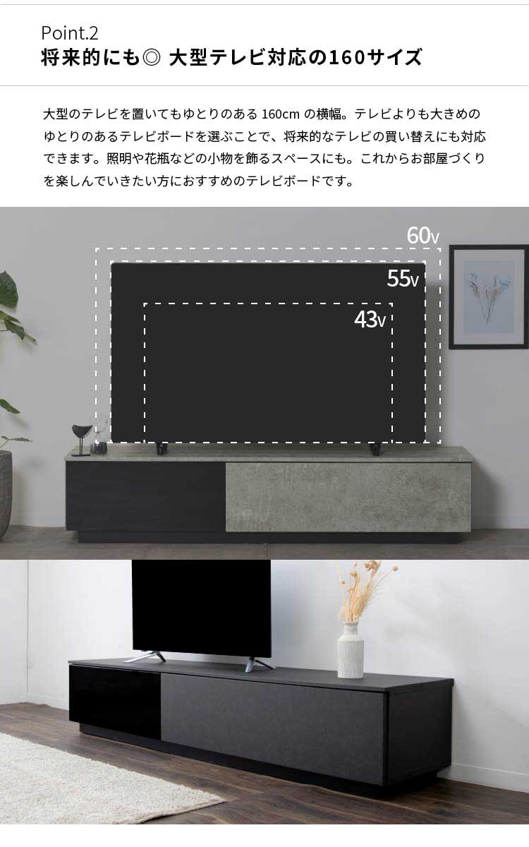 テレビ台 テレビボード 幅 160 cm ローボード 完成品 白 おしゃれ 収納 AVラック TV台 石目柄 グレー シンプル モダン 160cm 幅 黒 セラミック調