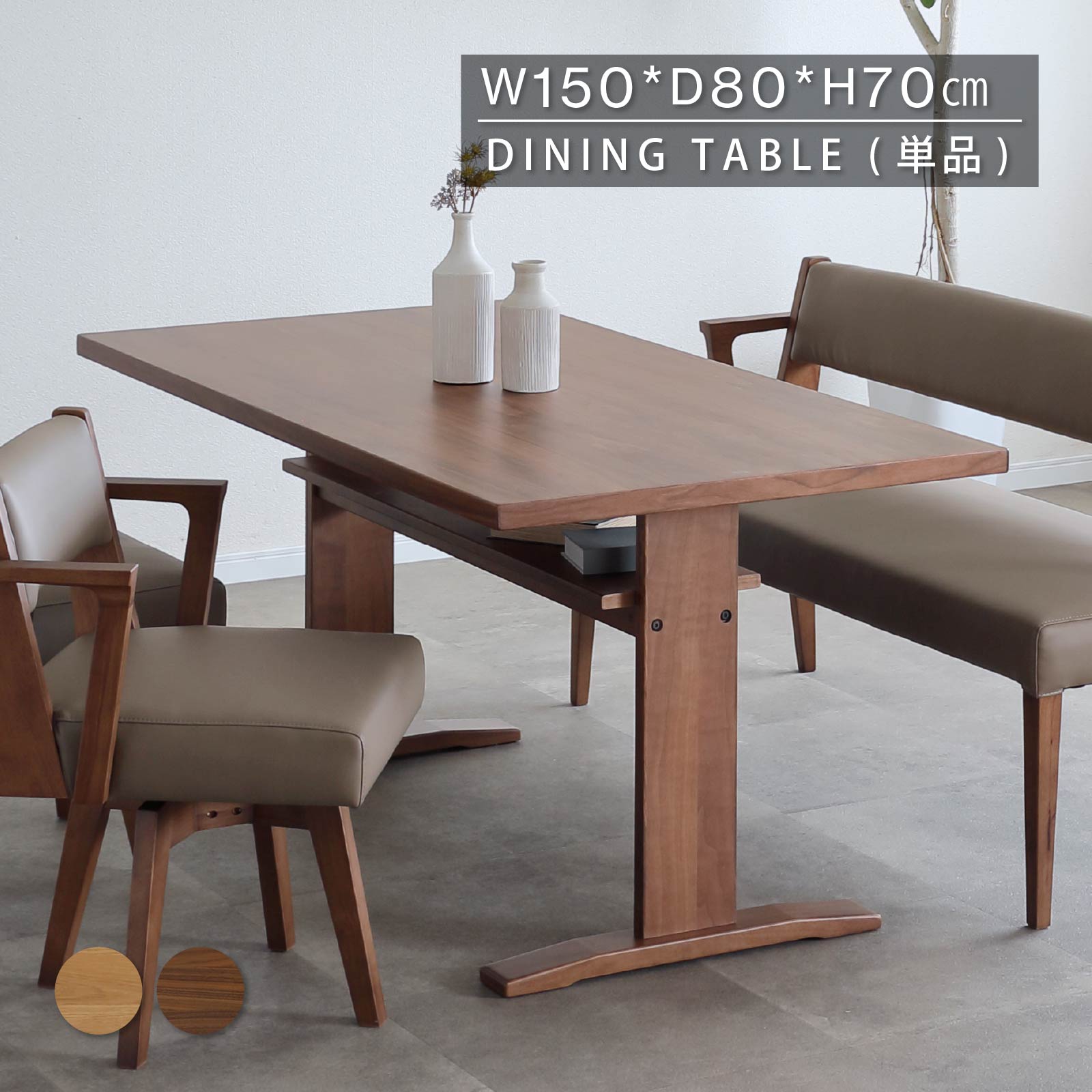 ダイニングテーブル 収納付き 2本脚 幅 150 cm 4人掛け 4人用 オーク ウォールナット モダン おしゃれ LDテーブル ダイニング テーブル 収納 棚