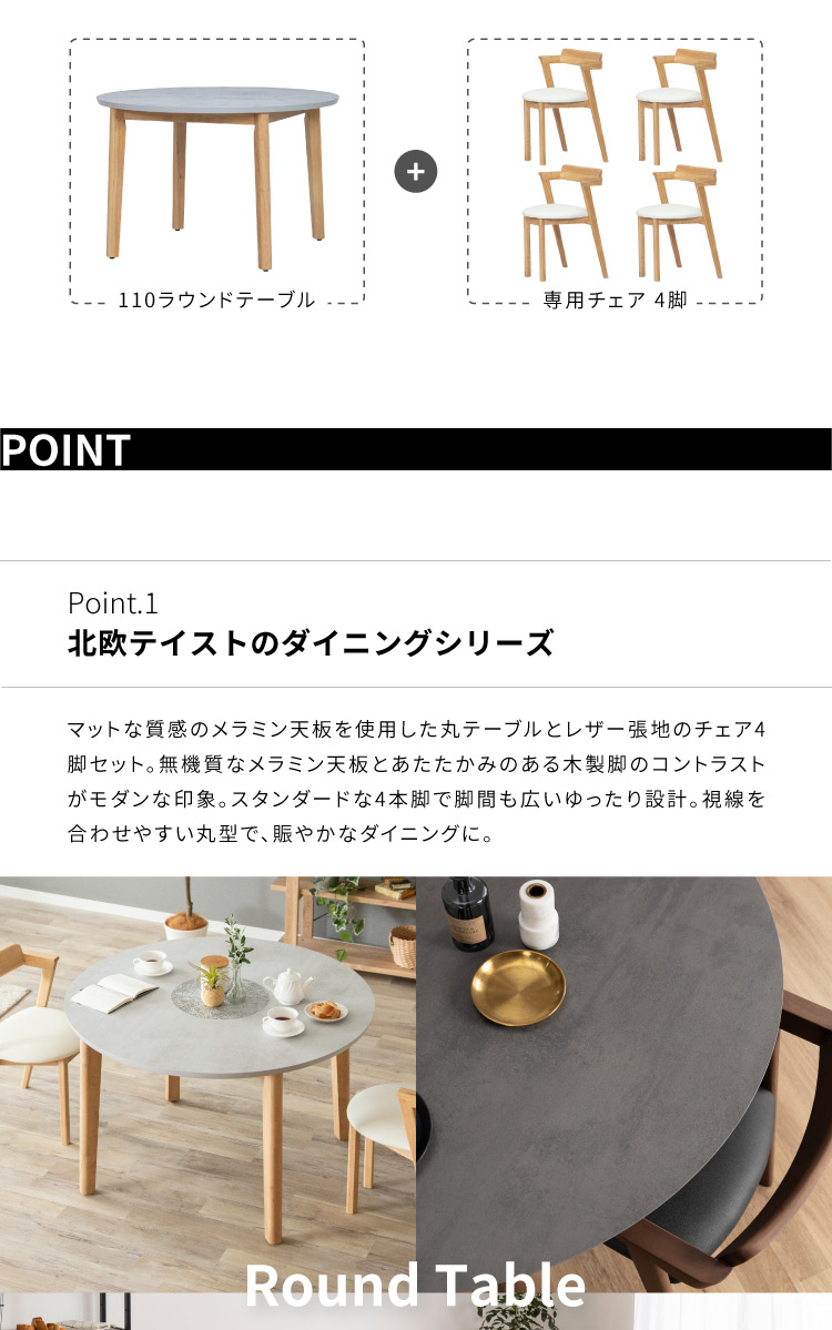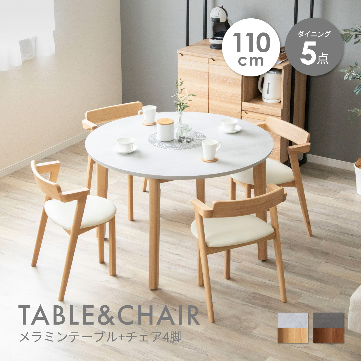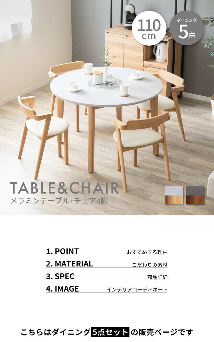 ダイニングテーブルセット 4人用 丸テーブル 北欧 110cm 幅 4人掛け おしゃれ 木製 食卓 テーブル コンパクト 円形 メラミン ジャパンディ