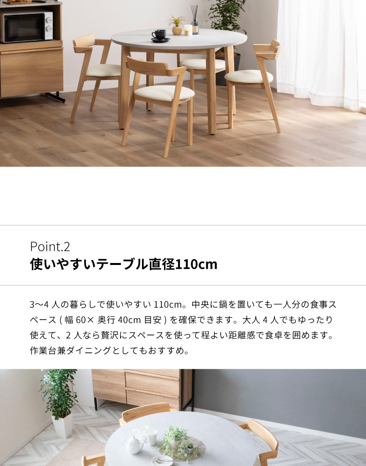 ダイニングテーブルセット 丸 北欧 110cm 幅 4人掛け おしゃれ 木製 食卓 テーブル コンパクト 円形 ダイニング テーブル 4 人 カフェ ホワイトオーク Japandi ジャパンディ 新生活 ポイント利用