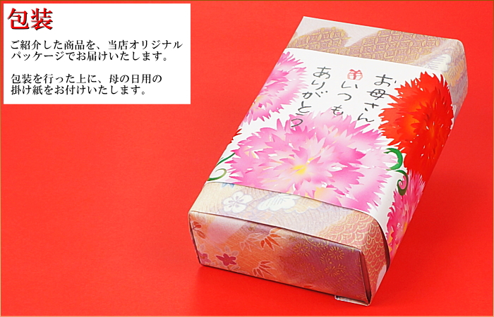 こちらの商品は、母の日専用の掛け紙、カードをお付けしております。ご不要の場合には、カート上部のプルダウンより「不要」をご選択ください。