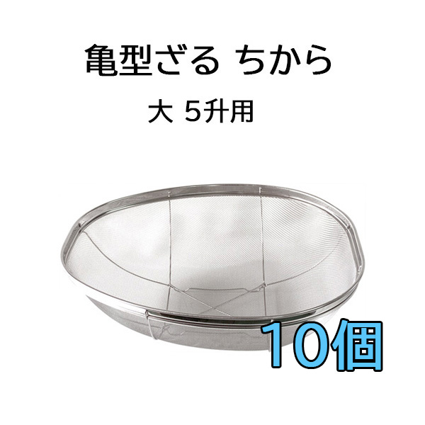 (10個セット特価) 国産品 18-8 ステンレス 亀型ざる ちから 大 5升用 米揚ザル 亀ざる 日本製 井上金網工業 410×355×高さ130mm(zsウ)