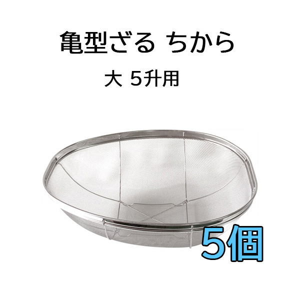 (徳用5個セット) 国産品 18-8 ステンレス 亀型ざる ちから 大 5升用 米揚ザル 亀ざる 日本製 井上金網工業 410×355×高さ130mm (zsウ)