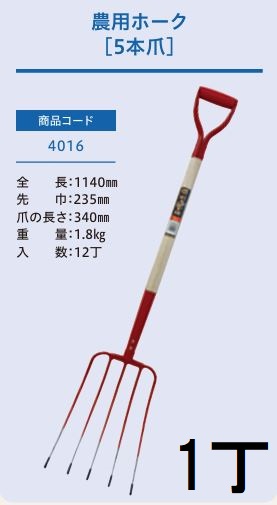 品名 | 販売単位 | 全長 | 先幅 | 頭部 | パイプホーク4本爪 | 1本 | 1155mm | 240mm | 360mm | 6本 | パイプホーク5本爪 | 1本 | 6本 | 農用ホーク4本爪 | 1本 | 340mm | 6本 | 農用ホーク5本爪 | 1本 | 6本 | 農用ホーク6本爪 | 1本 | 6本 | |