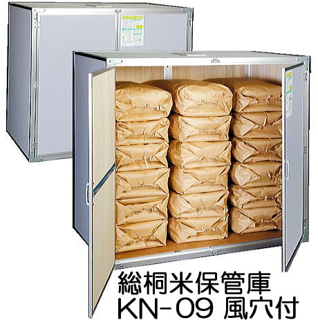 | 品番 | KN-03 | KN-06 | KN-09 | KN-12 | | 収納 | 玄米30kg 6袋/3俵 | 玄米30kg 12袋/6俵 | 玄米30kg 18袋/9俵 | 玄米30kg 24袋/12俵 | | サイズcm | W50×D71×H121 | W83×D71×H121 | W125.5×D71×H121 | W167.5×D71×H121 | | 重量 | 25kg | 34kg | 45kg | 56kg | |
