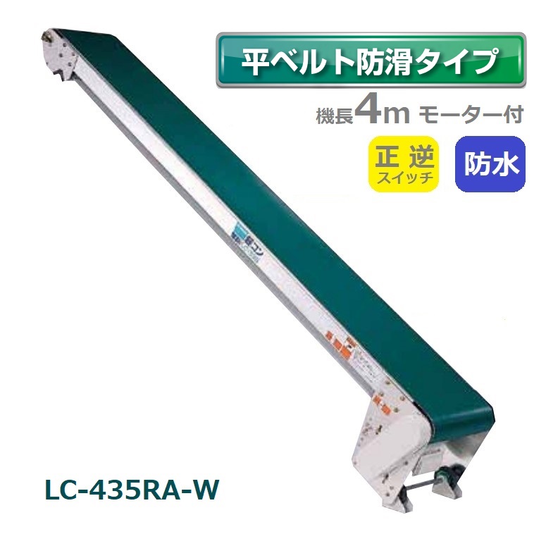 (受注生産 送料別途見積) 防水タイプ 軽コン LC-435RA-W 防滑ベルト 4m 正逆スイッチ付 モーター付 軽量 ベルトコンベア 啓文社 (4tトラック進入可能地域限定)