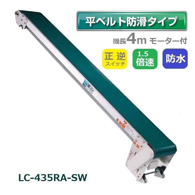 (受注生産 送料別途見積) 防水タイプ 軽コン LC-435RA-SW 防滑ベルト 4m 正逆スイッチ 1.5倍速 モーター付 軽量ベルトコンベア 啓文社 (4tトラック進入可能地域)