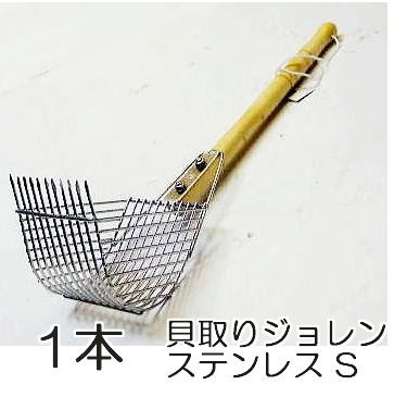 (貝取り袋2枚 手袋2双 進呈) ステンレス製 貝取りジョレン (11本爪) 幅10cm柄長36cm 貝取ジョレン (ステンレス貝とりジョレンセット A-8287 エーワン) (zmI2)