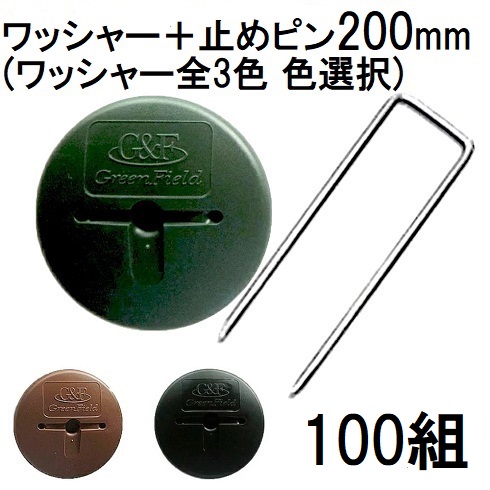 (100組セット) デュポン 純製品 ザバーン GFワッシャー と コ型止めピン200mmセット 100組 防草ワッシャー コの字ピン (防草シート JPシート) P-200-600 zm