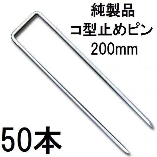 (50本セット) デュポン ザバーン 純製品 防草シート用 コ型止めピン 200mm P-200-600 コの字ピン グリーンフィールド (レターパックor佐川等) (zmH1)