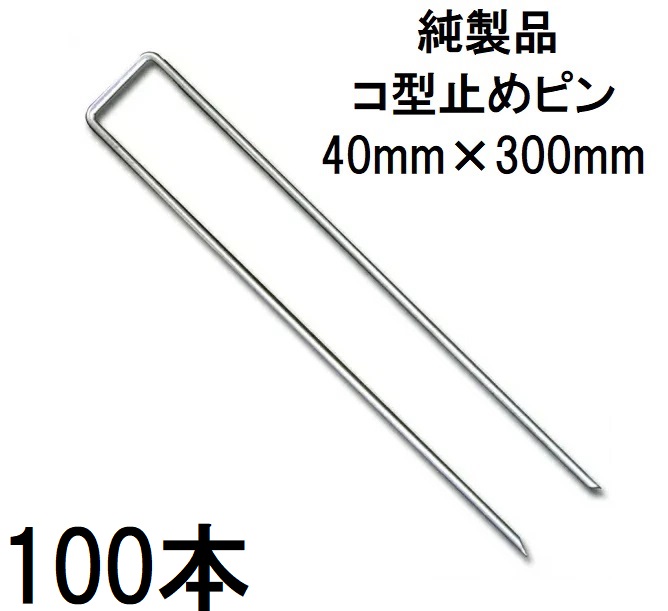 (100本セット) デュポン ザバーン 純製品 防草シート用 コ型止めピン 300mm P-300-50 コの字ピン (防草シートピン JPシート) グリーンフィールド (zmH1)