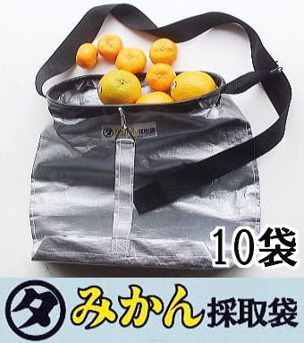 肩に掛けたままみかんを移すことができる便利なみかん採取袋です。