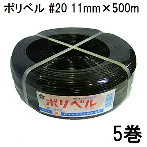 (5巻セット) ハウスバンド マイカ線 ポリベル #20 11mm×500m 黒 石本マオラン zs