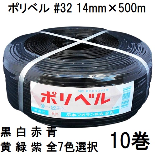 (10巻セット特価) ポリベル #32 14mm×500m 黒 ハウスバンド ハウスベルト 石本マオラン (白/赤/青/黄/緑/紫/黒 色選択 法人個人選択)