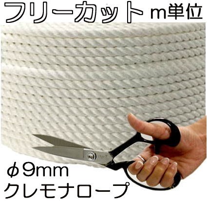 (日本製 強力タイプ) クレモナロープ 直径9mm 長さ カット販売 m単位 (国産品) 三つ撚り 三つ打 正丸 ビニロンロープ ナロック