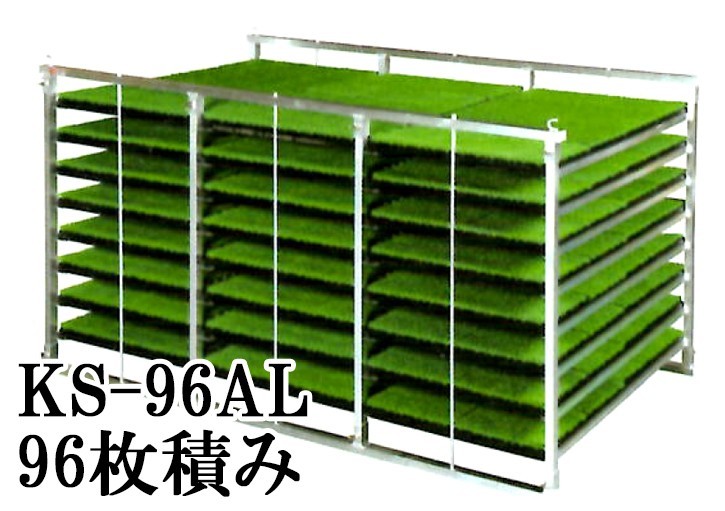 (2025年度分完売.2026.2月以降生産)オールアルミ 苗コンテナ KS-96AL 軽トラック用 水平型 苗箱収納棚 96枚積載 アルミナエコン 日本製 ケーエス製販