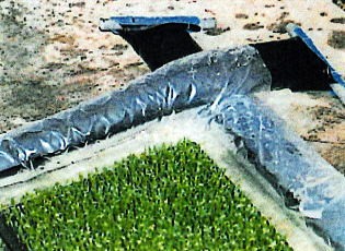 ●黒チューブに水を注入するだけで簡易プールが出来ハウス内でも露地でも作業が簡単です。 |