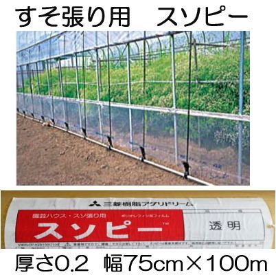 スソピー 厚さ0.2mm×幅75cm×長さ100m ハウス スソ張り用農PO すそ張りシート ポリオレフィン系フィルム MKVアドバンス 三菱樹脂アグリドリーム zm