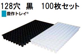 (100枚セット特価) 豊作トレイ 128穴 黒 30角 590×300×44mm (セルトレー プラグトレー 育苗トレー プラグトレイ) 田中産業 (法人/西濃運輸営業所止め 選択)