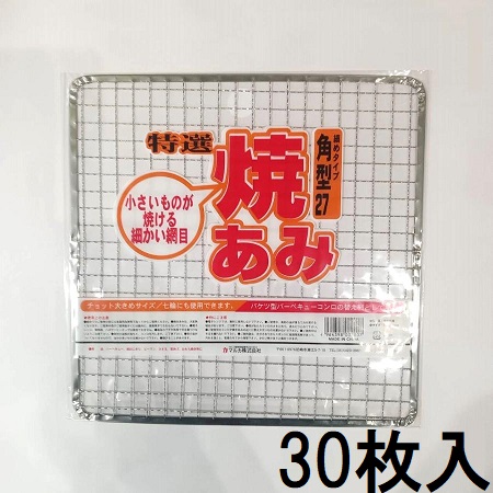 (30枚セット) 焼あみ 細目 角型27 27cm バーベキュー 焼き網 焼きあみ 焼網 角網 餅網 マルカ