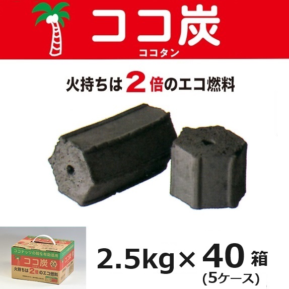 40箱 (8箱×5ケース) ココ炭 2.5kg 木炭 の2倍長持ち 燃焼時間が長い バーベキュー用 ココナッツ炭 | 法人限定価格
