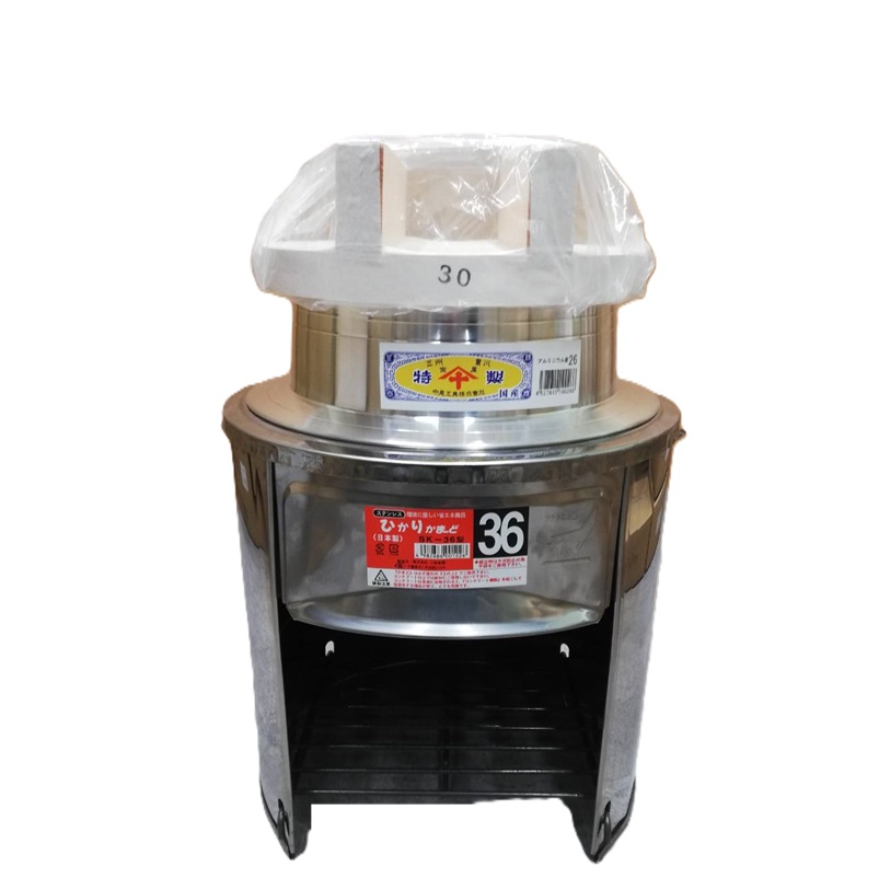 (徳用3点セット) ステンレス ひかりカマド36cm SK-36 羽釜26cm 釜蓋30cm付 [餅つき 炊き出し もちつき 竈 竃 かまど 瀧商店]