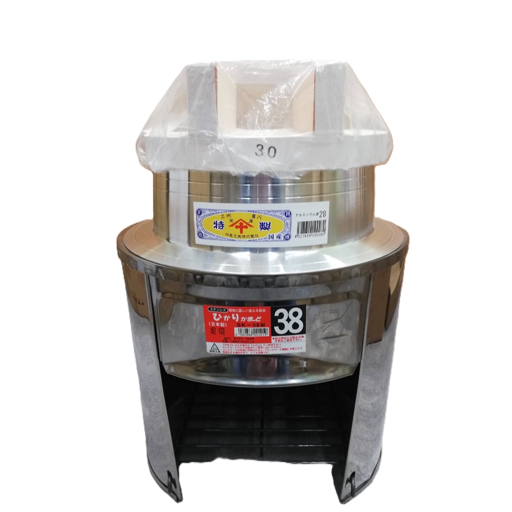 (徳用3点セット) ステンレス ひかりカマド38cm SK-38 羽釜28cm 釜蓋30cm付 [餅つき 炊き出し もちつき 竈 竃 かまど 瀧商店]