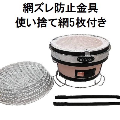 しちりんBBQ丸型28cm + 玉付ストッパー + Φ28cm使い捨て網 5枚