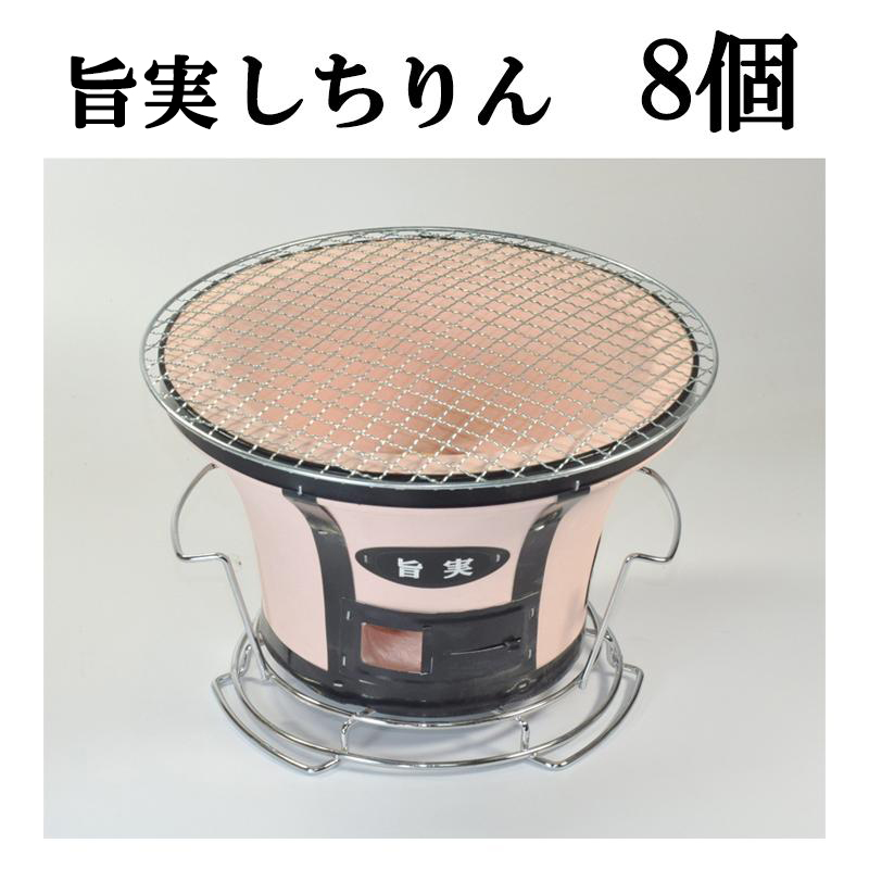 (8個セット特価) 珪藻土 しちりん 旨実(うまみ)しちりん 直径25cm 高さ19cm (丸アミ、土目皿) 七輪 BBQ バーベキューコンロ キャンプ アウトドア 焼肉 旨味 zm