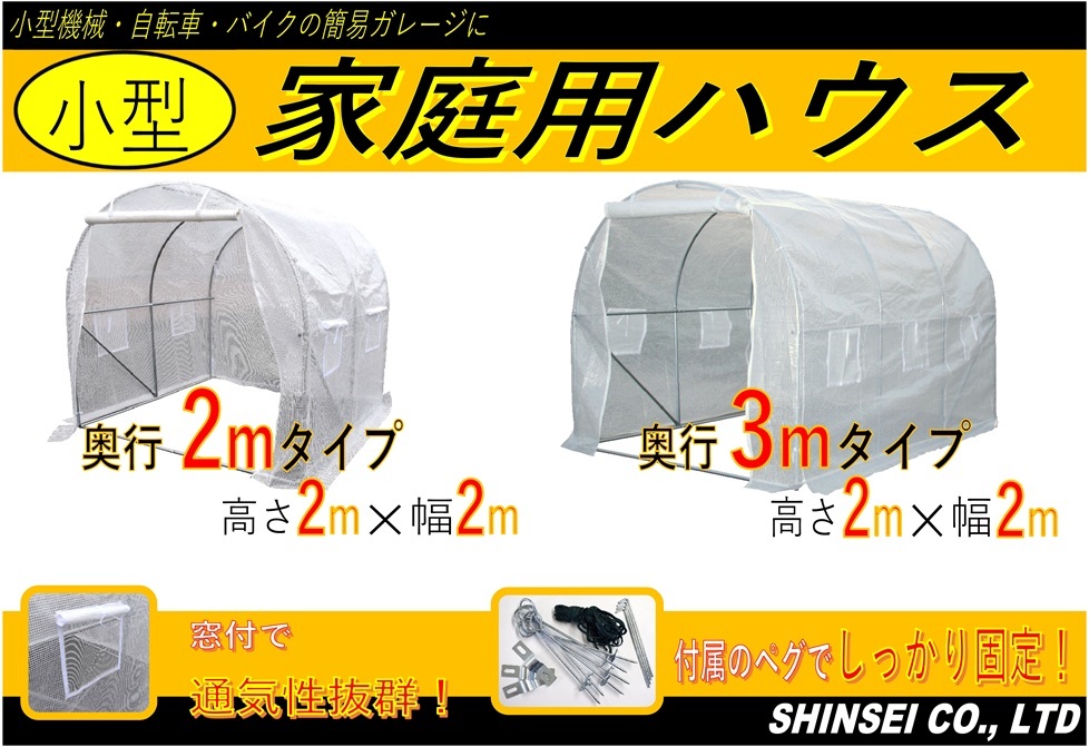 小型家庭用ハウス 2m×3m シンセイ|小型機械・自転車・バイク用ハウス 簡易ガレージ サイクルハウス (法人個人選択)