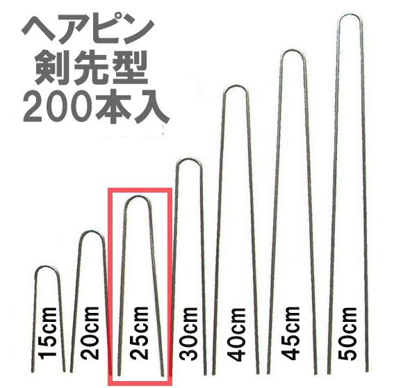 (200本入) ヘアピン杭 φ3.5mm× 25cm (止め杭 留め杭 Uピン杭 U型シート押えピン) 槍木産業