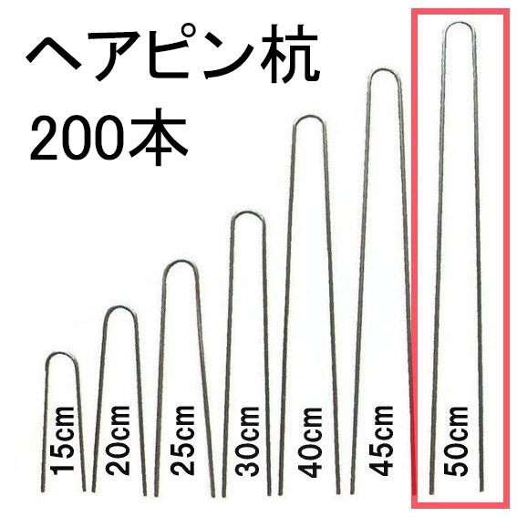 (200本入) ヘアピン杭 φ4.1mm×50cm (止め杭 留め杭 U型シート押えピン Uピン杭) 防草 シート固定ピン 槍木産業