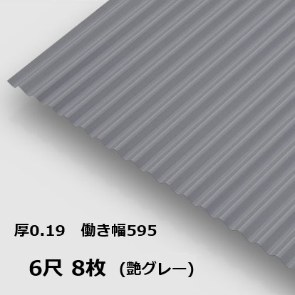 8枚単位 波板 6尺 艶グレー 丸波0.19mm厚 幅650mm(有効幅595) 約1829mm 梱包重量18.7kg カラー亜鉛鉄板 塗装溶融めっき鋼板 トタン板 灰色