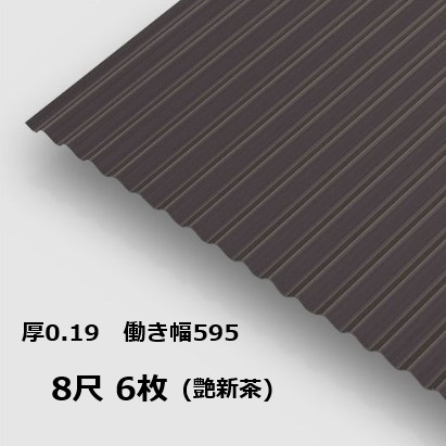6枚単位 波板 8尺 艶新茶 丸波0.19mm厚 幅650mm(有効幅595) 約2438mm 梱包重量18.7kg カラー亜鉛鉄板 塗装溶融めっき鋼板 トタン板