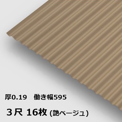 16枚単位 波板 3尺 艶ベージュ 丸波0.19mm厚 幅650mm(有効幅595) 約914mm 梱包重量18.8kg カラー亜鉛鉄板 塗装溶融めっき鋼板 トタン板