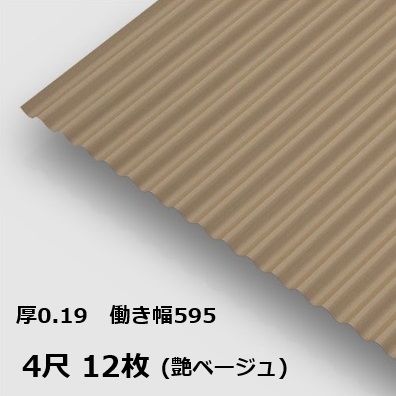12枚単位 波板 4尺 艶ベージュ 丸波0.19mm厚 幅650mm(有効幅595) 約1219mm 梱包重量18.8kg カラー亜鉛鉄板 塗装溶融めっき鋼板 トタン板