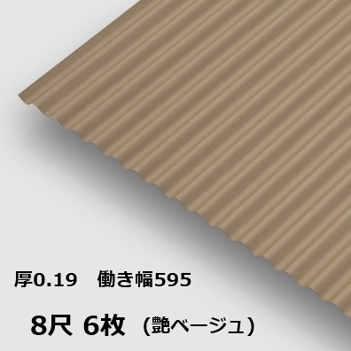 6枚単位 波板 8尺 艶ベージュ 丸波0.19mm厚 幅650mm(有効幅595) 約2438mm 梱包重量18.7kg カラー亜鉛鉄板 塗装溶融めっき鋼板 トタン板