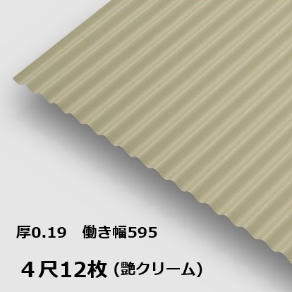 12枚単位 波板 4尺 艶クリーム 丸波0.19mm厚 幅650mm(有効幅595) 約1219mm 梱包重量18.8kg カラー亜鉛鉄板 塗装溶融めっき鋼板 トタン板